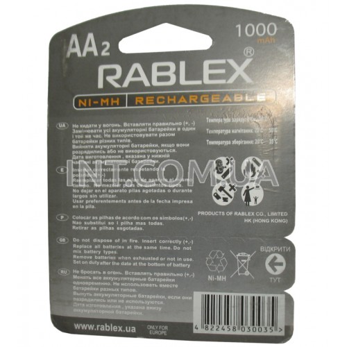 Аккумулятор / Ni-MH / 1000 mAh / 1.2V / AA / Rablex