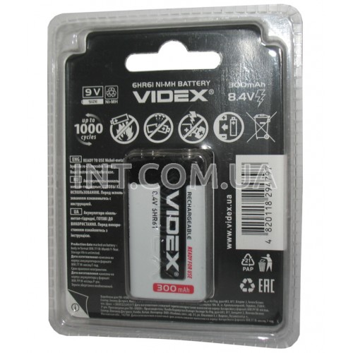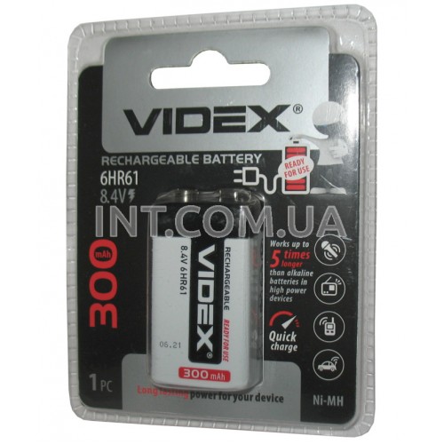 Аккумулятор / Ni-MH / Крона / 6HR61 / 300mAh / 8,4V / Videx