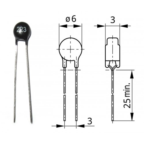 Термистор (терморезистор) / 10 Om (25°C) NTC / KLS6-MF72-10D5 / Imax=0.7A / KLS / D=6mm