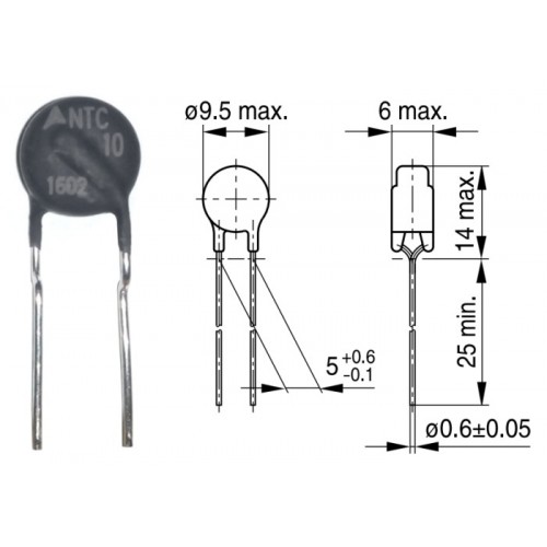 Термистор (терморезистор) / 5E Om (25°C) / B57235S509M / Imax=4.2A / Pmax=1.8W / EPCOS