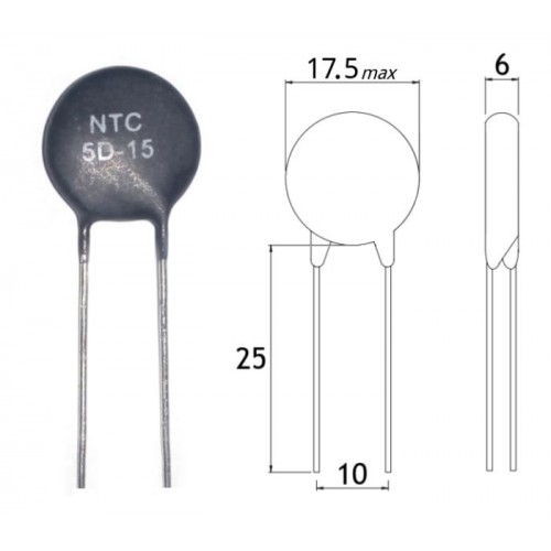 Термистор (терморезистор) / 5E Om (25°C) / 5D-15 / Imax=6A / NTC