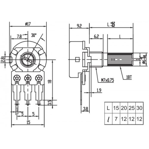 10K Om переменный / WH148-1A-2 10kB / L=13mm / звезда / лин. / 0.125W / KLS
