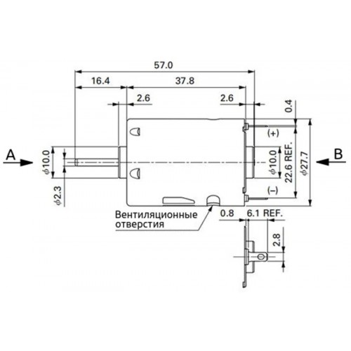 ◦ Габаритные размеры двигателя: D=27mm, L=40mm (без оси)