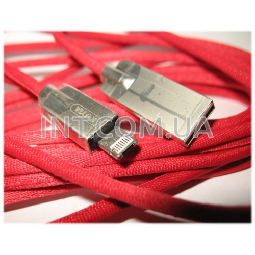 Кабель USB A - USB type-C (тип C) / L=2m / Lightning Apple, тканевая оплетка, прям. штекеры, красный