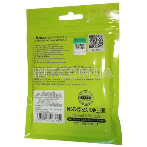 Кабель USB A - USB type-C (тип C) / L=1m / Hoco