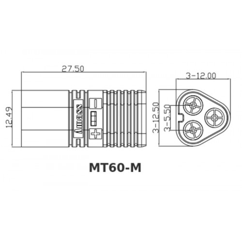Гнездо и штекер питания DC / MT30-F/M / на кабель, пластик, для выс.ток. цепей, 3 вывода, пара