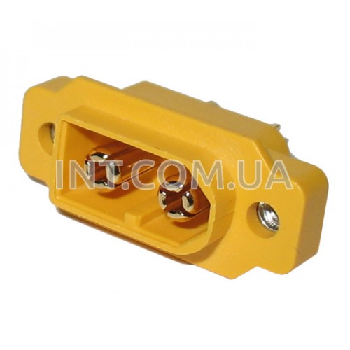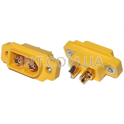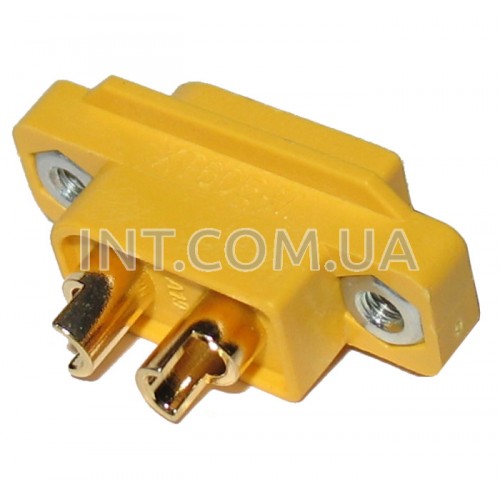 Разъемы типа XT60 применяются для подключения высокотоковых цепей (например силовых аккумуляторов) для передачи токов до 60 А. За счет прочной конструкции корпуса и позолоченных пружинных контактов обеспечивается надежное соединение с очень малым сопротивлением контактной пары. Разъем XT60E1-M предназначен для монтажа в корпус. Винты крепления в комплект поставки не входят.