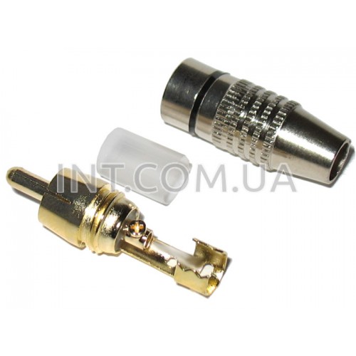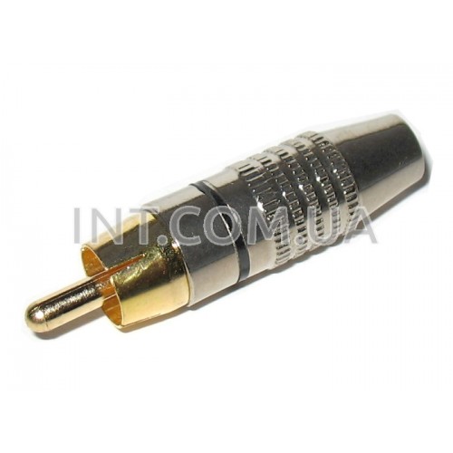 Штекер RCA / на кабель / JT-1733 / металл, позолоченный, чёрная линия