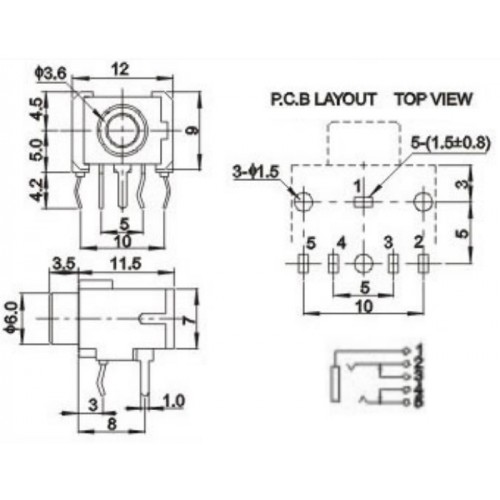 Гнездо аудио / 3,5 mm / стерео / монтажное / 5 выводов / пластик / PJ-306 Гнездо аудио / 3,5 mm / стерео / монтажное / 5 выводов / пластик / PJ-306