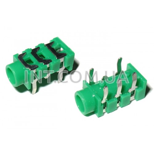 Гнездо аудио / 3,5 mm / стерео / на плату / 5 выводов / пластик, зеленый