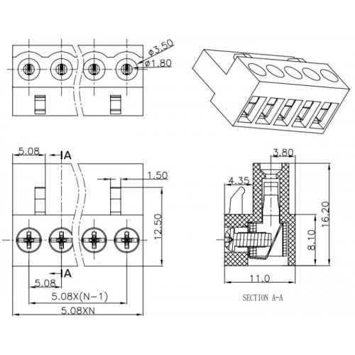 HT508K-04P-14 / клеммник на на кабель / шаг 5.08 mm
