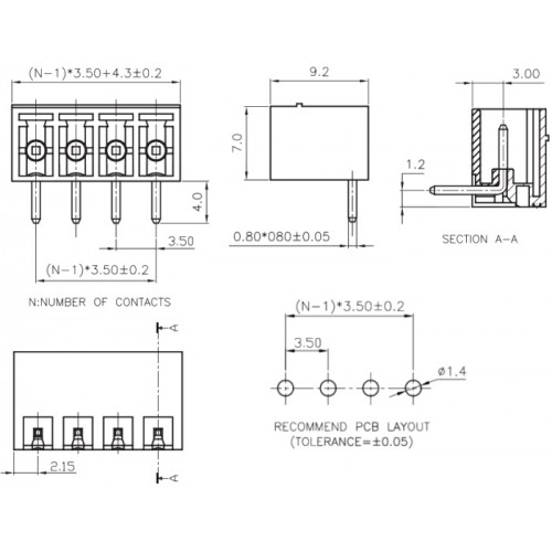 KLS2-EDR-350-04P-4 / разъем на плату, угловой / шаг 3.50 mm / KLS