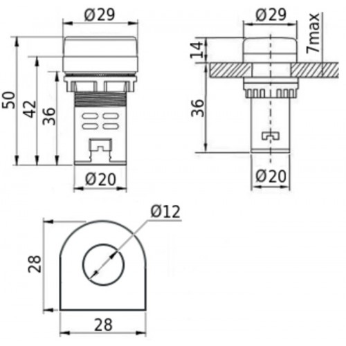 ◦ Размер под монтажное отверстие: D=20mm, L=36mm