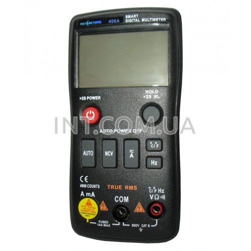 Цифровой мультиметр Richmeters RM408A предназначен для измерения постоянного и переменного напряжения, постоянного и переменного тока, сопротивления, частоты, проверки диодов, прозвонки цепей. Разрядность шкалы мультиметра: 4000 отсчетов. Поддержка True RMS измерений. Поддержка автоматического выбора измеряемой величины и диапазона измерений.