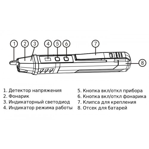 Прибор выполнен в компактном корпусе размером немногим больше чем пергаментный маркер. Питание от двух микропальчиковых батареек ААА (в комплект не входят).
