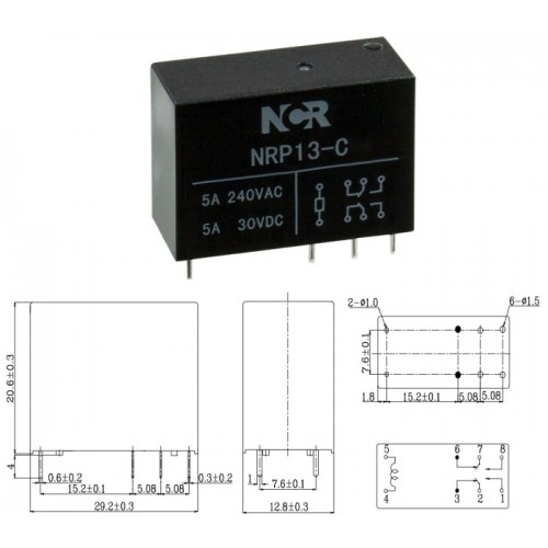 Реле NRP-13-C-24D-H / I=5A / U=240VAC/30VDC / Ucoil=24VDC / 2NO/NC / 29.2x12.8x20.6mm / NCR