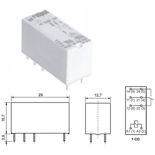 Реле RM85-2011-35-1005 / I=16A / U=250VAC / Ucoil=5VDC / NO/NC / 29x12.7x15.7mm / RELPOL