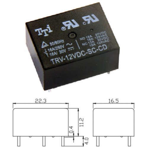 Реле TRV-12VDC-SC-CD / I=16A / U=250VAC/30VDC / Ucoil=12VDC / NO/NC / 22.3x16.5x11.2mm / TAI