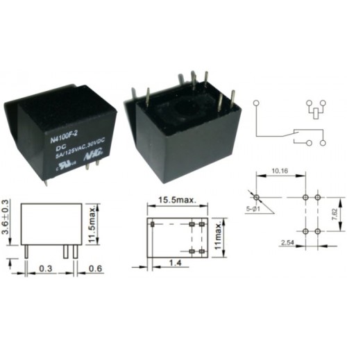 Реле N4100F2-CHS5-DC12V / I=5A / U=125VAC/30VDC / Ucoil=12VDC / NO/NC / 15x11x11mm / NINGBO /5 ножек