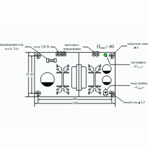 □ Габаритные размеры: 100 х 55 mm, высота = 40 mm