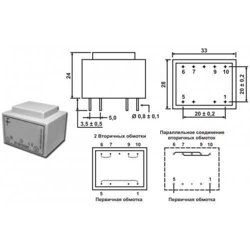 Трансформатор ТН 30/12 G / P=1.8VA / Uin=220V / Uout=2x18V / 33х28х24mm / ТорТранс