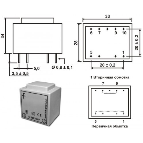 Трансформатор ТН 30/23 G / P=3.2VA / Uin=380V / Uout=12V / 33х28х34mm / ТорТранс
