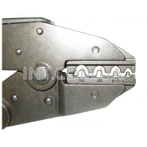 Диапазон обжимаемых жил от 0.5 до 16 mm2. Форма обжима точечная. Создает надежное и прочное соединение. Имеет точно подогнанные матрицы. Храповой механизм, обеспечивающий блокировку обратного хода до завершения полного цикла опрессовки. Опрессовка происходит в одно движение.