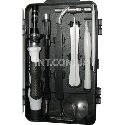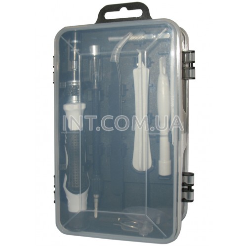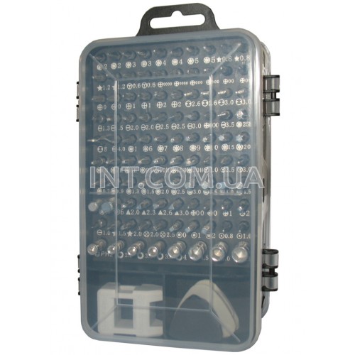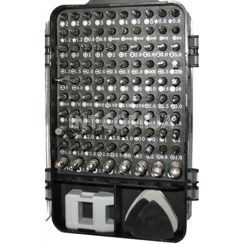 Набор инструментов многофункциональный 115 в 1 применяется для ремонта мобильных телефонов, планшетов, ноутбуков и другой подобной техники. Все инструменты находятся в удобном двухстороннем пластиковом кейсе. С одной стороны инструменты, с другой насадки (биты) в подписанных ячейках. Материал насадок - хром-ванадий.