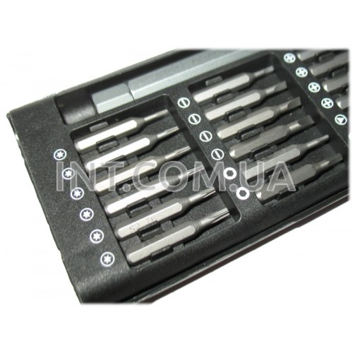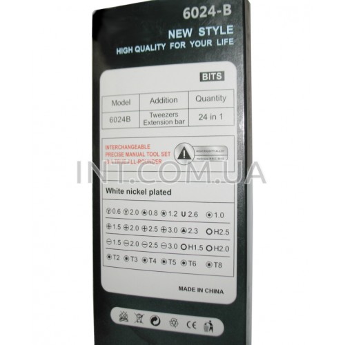 Набор отверток 6024-B (24 в 1) применяется для ремонта мобильных телефонов, планшетов и другой подобной техники. Все насадки и отвертка находятся в пластиковом футляре-кейсе.