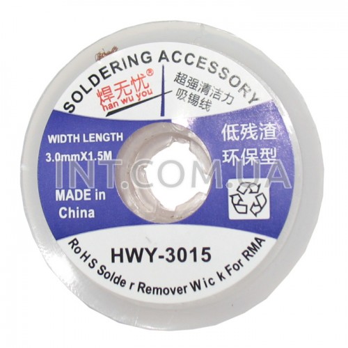 Оплетка для выпайки (всасывающая лента) - медная всасывающая припой-лента с безотмывочным флюсом для очистки контактных площадок от припоя. Представляет собой сплетенную из множества медных проводников ленту.