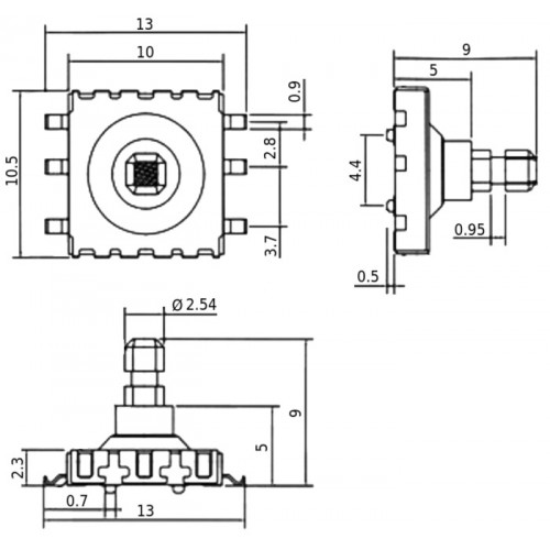 Кнопка тактовая-джойстик / KLS7-MT-05-9,0 / 10x10x9mm / 4-х позиц.+1 по центру, 12VDC, 100mA, OFF-ON