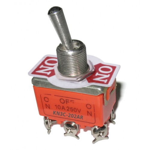 Тумблер / 250V / 10A / 2гр. по 3 контакта / KN3C-202AR / ON-OFF-ON