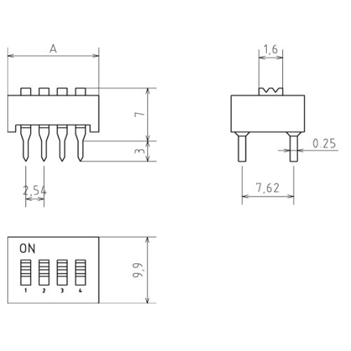 Переключатель DIP / 4-х позиционный / SWD1-4 (DS04B)