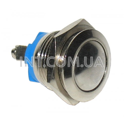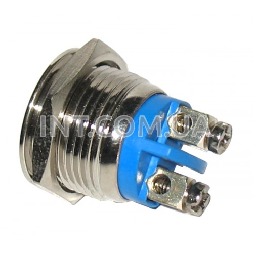 Кнопка антивандальная. Металлический корпус и сама кнопка. Монтаж на поверхность. Фиксация корпуса при помощи гайки. Крепление контактов - винтовое. Диаметр посадочного места: 16 mm. Высота кнопки с контактами: 23 mm. Форма поверхности кнопка - полусфера. Ход кнопки: 1.5 mm. Нормально разомкнутая (NO).