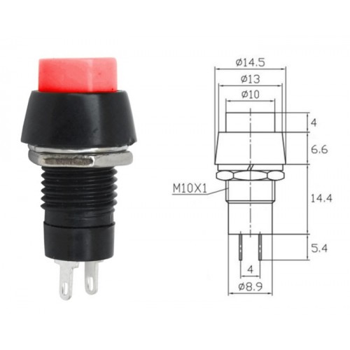 Кнопка корпусная / 250V / 1A / c фиксацией / без подсв. / NO, круглая, красная