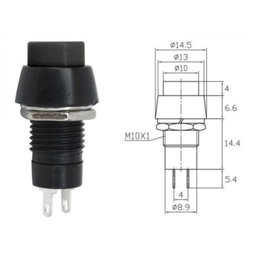 Кнопка корпусная / 250V / 1A / c фиксацией / без подсв. / NO, круглая, черная