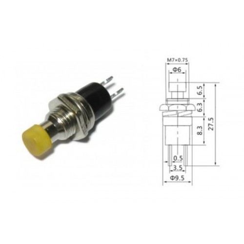 Кнопка корпусная / 250V / 1A / PBS-105 / без фиксаци / без подсв. / NO, круглая, желтая, 20x7mm