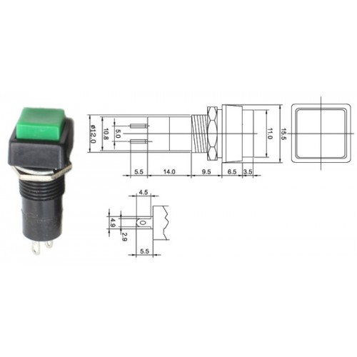Кнопка корпусная с фиксацией / 220V / 3A / 314 / пластик, квадратный, зеленая