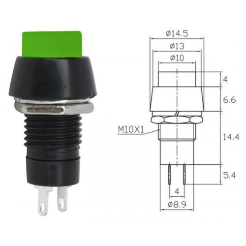 Кнопка корпусная / 250V / 1А / PBS-20В / без фиксации / без подсв. / NO, зеленая