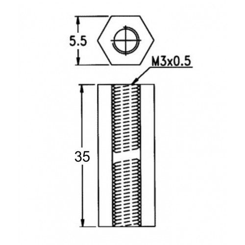 Стойка пластиковая монтажная / HTP-335 / двустор. с внутр. резьбой 2xМ3, h=35mm