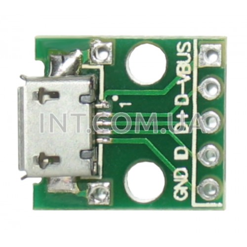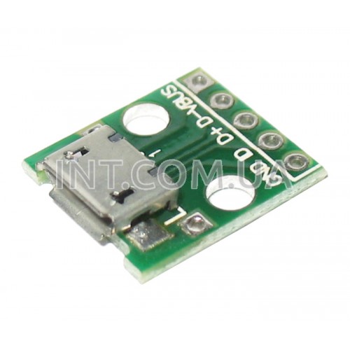Переходник гнездо USB micro - DIP5 (2.54mm) / на плате с отв. для крепления / 16x14mm