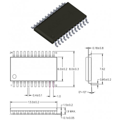MBI5026GF / драйвер светодиодов с шиной управления, 16-и каналов, Iout=90mA / SOP24-300-1.00