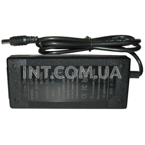 Зарядное устройство SJT-60E (Lii-252200) предназначено для заряда 6-и последовательно соединенных аккумуляторов (АКБ) типа Li-Ion или Li-Po с полным напряжение заряда равным 25.2 V. Зарядное устройство (далее ЗУ) выполнено в виде моноблока-адаптера компактных размеров. Предусмотрена индикация процесса заряда (красный цвет) и окончания заряда (зеленый цвет). Подключение сборки АКБ выполняется через стандартный разъем типа DC 5.5x2.1mm . Предусмотрены защиты от короткого замыкания, от перегрузки по напряжению и по току, перегрева.