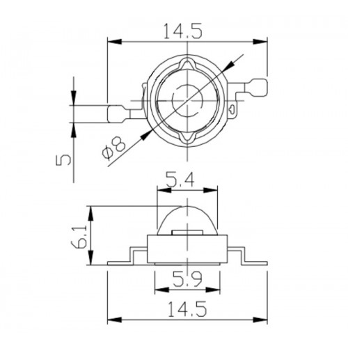 Светодиод / D=8mm,h=6mm / белый теплый / Imax=350mA, P=1W / 130° Светодиод / D=8mm,h=6mm / белый теплый / Imax=350mA, P=1W / 130°