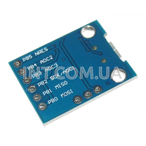 ATtiny85 Digispark Kickstarter миниатюрная arduino плата. Выполнена в виде платы с micro USB разъемом размером с флешку. Полностью поддерживается Arduino IDE. Возможно подключение внешнего питания. В контроллер установлен бутлодер, что позволяет записывать прошивку непосредственно через USB порт, без применения отдельных программаторов. Подключение к ПК производится через разъем micro USB. Т.к. у ATTiny85 нет встроенного аппаратного USB интерфейса и на плате нет микросхемы моста типа CH340 или аналогичной, то USB интерфейс программно эмулируется загрузчиком.