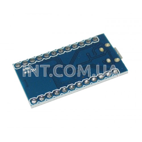 Миниатюрная плата Arduino Pro Micro на микроконтроллере ATmega32U4 с аппаратным USB интерфейсом. Эта плата является аналогом Arduino Leonardo - так же работает на чипе ATmega32U4 но не совместима с arduino-шилдами из уменьшенного размера. В контроллер установлен бутлодер, что позволяет записывать прошивку непосредственно через USB порт, без применения отдельных программаторов. Плата не имеет отдельного разъёма питания. Подключение к ПК производится через разъем micro-USB. USB интерфейс аппаратный и реализован в самом микроконтроллере. Это позволяет организовать стандартные USB-профили, например смоделировать клавиатуру, мышь, флэш-накопитель, а также разработать устройство со своим профилем. При подключении к ПК данная плата может распознаваться не только как виртуальный COM-порт, но и как USB HID-устройство.