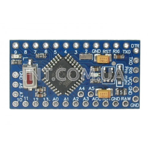 Arduino Pro Mini - миниатюрная плата, которая является близким аналогом Arduino Nano. Не совместима с arduino-шилдами из за уменьшенного размера. Работает на микроконтроллере ATmega328P. В контроллер установлен бутлодер, что позволяет записывать прошивку непосредственно через USB порт, без применения отдельных программаторов.