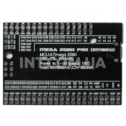 Arduino Mega 2560 Pro Mini - миниатюрная arduino плата которая раскрывает возможности 8-и разрядных AVR микроконтроллеров. Установлен микроконтроллер ATmega2560 с большими объемами памяти, богатой внутренней периферией и множеством линий ввода/вывода. Основное преимущество данной платы по сравнению с Arduino Mega 2560 - очень компактный размер. Тем не менее, на плате установлен базовый набор компонентов для поддержки работоспособности микроконтролера ATmega2560.