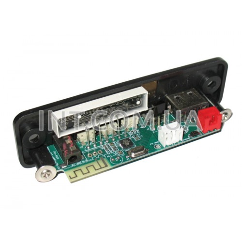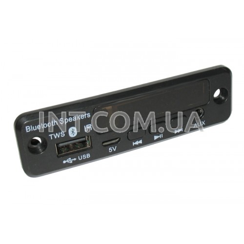 Aудио-плеер предназначен для встраивания в аудио-аппаратуру. Позволяет проигрывать звуковые файлы в MP3, WMA, WAV форматах. Читает обычные USB флешки. Есть встроенный стереофонический FM радио приемник который работает на частотах 88...108 MHz. Также встроен BlueTooth 5.0 позволяющий проигрывать аудио прямо со смартфона. Управление плеером возможно с лицевой панели, пульта ДУ, смартфона (при подключении по BlueTooth). Модуль оснащен дисплеем на котором отображается: режим работы, номер трека, который воспроизводится, или частота FM станции. Плеер не имеет встроенного усилителя мощности - только линейный стерео выход. В комплекте с данным плеером идет пуль дистанционного управления (ДУ).