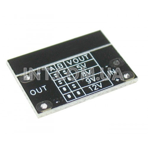 Повышающий DC-DC преобразователь CKCS BS01 с регулировкой выходного напряжения. Выходное напряжение имеет четыре фиксированных значения: 5, 8, 9, 12 V. Выходной ток Iout=0.3...1 А и зависит от выходного напряжения. Чем выше выходное напряжение - тем меньше выходной ток. По умолчанию установлено выходное напряжение 12 В. Выходное напряжение регулируется комбинацией перемычек A и B: A+B Uout=12V, A Uout=9V, B Uout=8V, без перемычек: Uout=5V. На плате установлен светодиод для индикации работы модуля.